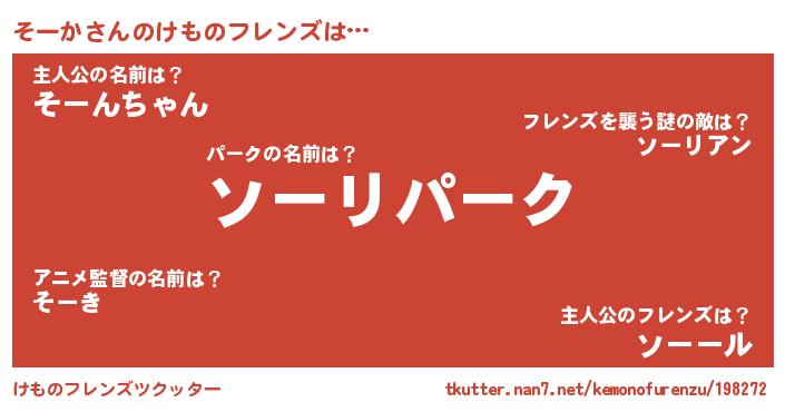 | 料理風あだ名 | 『栗とそーかのマフィン』『そーかごはん』 |