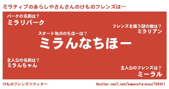 | 意味不明あだ名 | 『ミラティブのあらしやさんフォーエバー』 |