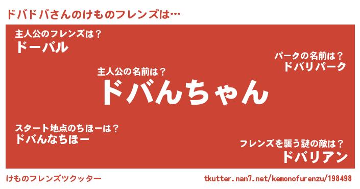 | 男性向けラノベタイトル風あだ名 | 『ドバドバの憂鬱』『魔弾の王とドバドバ』 |
