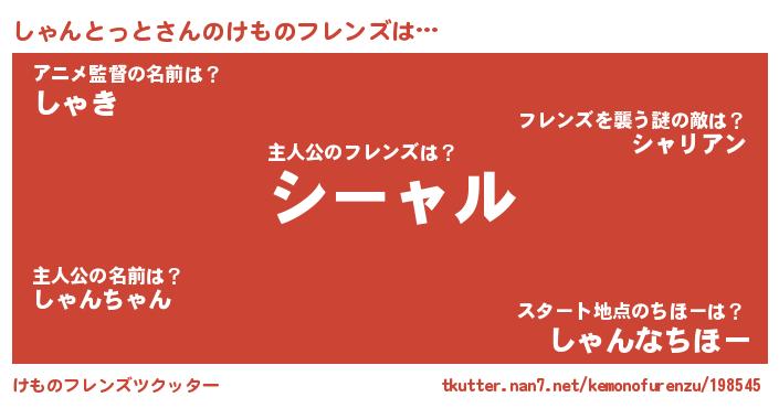 | ヘコむあだ名 | 『しゃんとっと(小並感)』『しゃっぺ』 |