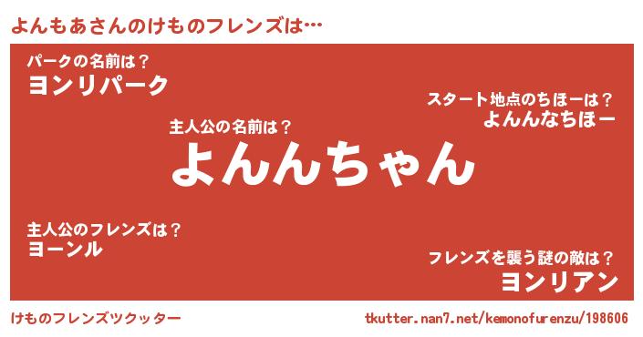 | 意味不明あだ名 | 『ペロリンよんもあ』『自称よんもあ』 |
