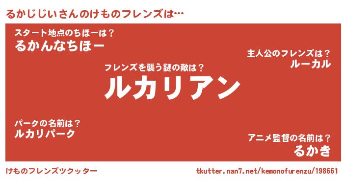 | ポケモン風あだ名 | 『ルックウザ』『ルーカイ』 |