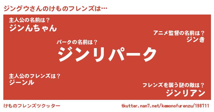 | 男性向けラノベタイトル風あだ名 | 『Re:ジングウから始める異世界生活』 |