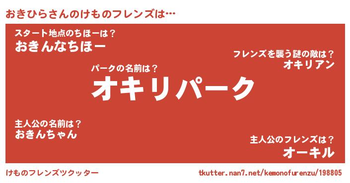 | 意味不明あだ名 | 『自称おきひら』『エリンギ科おきひら属』 |