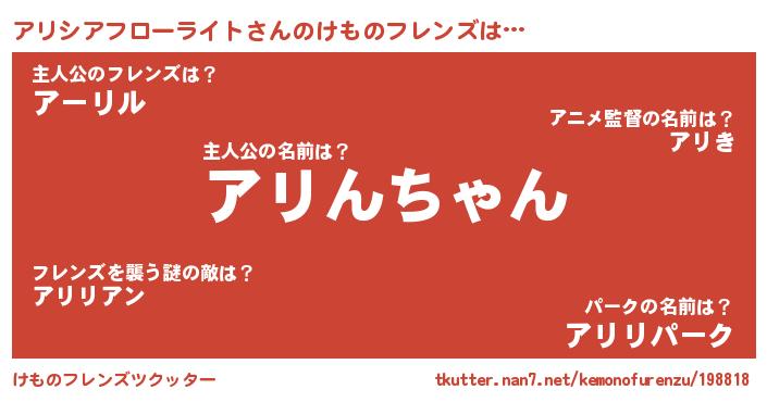 | ヒーロー風カッコイイあだ名 | 『スーパーアリシアフローライト』 |