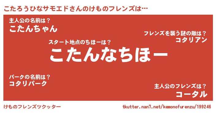 | ファンタジー風あだ名 | 『エターナルコタロウヒナサモエドー』 |