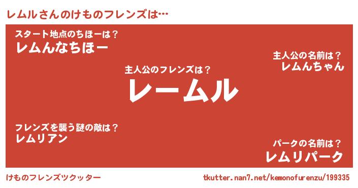 | 意味不明あだ名 | 『永久保存レムル』『しいたけ科レムル属』 |