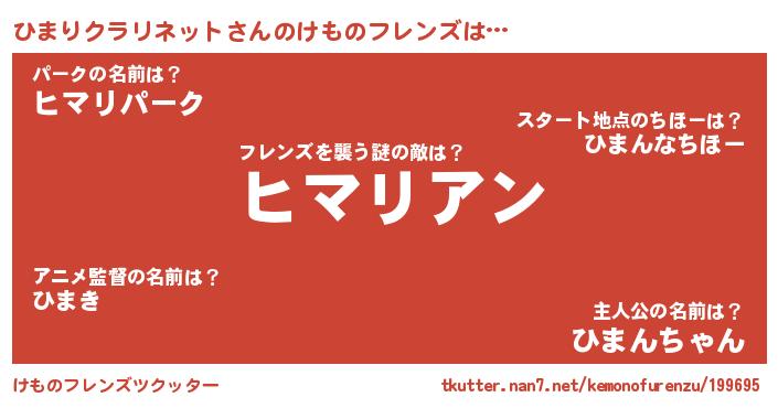 | 伝説のあだ名 | 『人々から恐れられる占い師ひまりクラリネット』 |