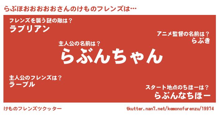 | 2回繰り返すあだ名 | 『ちゃちゃ』『らぶらぶ』『よぼよぼ』 |