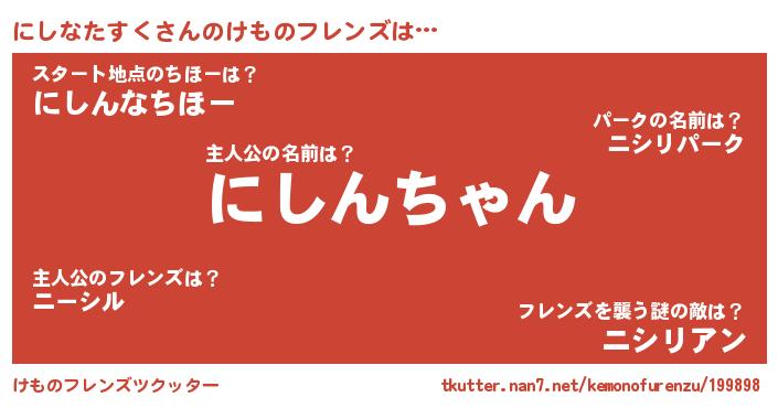 | ポケモン風あだ名 | 『ニシチュウ』『ニーシイ』 |