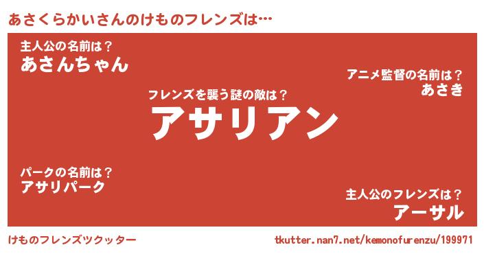 | 肩書あだ名 | 『あさくらかい学校長』『あさくらかいCEO』 |