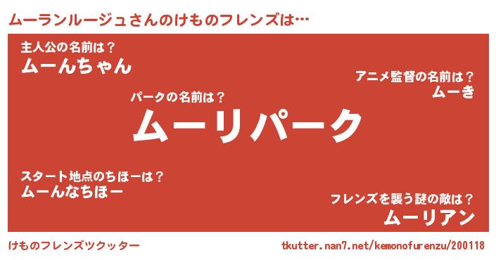 | 男性向けラノベタイトル風あだ名 | 『Re:ムーランルージュから始める異世界生活』 |