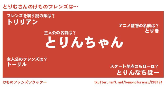 | 2回繰り返すあだ名 | 『とろとろ』『わいわい』『とりとり』 |