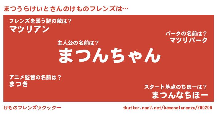 | 意味不明あだ名 | 『住所不定無職まつうらけいと(9歳)』 |