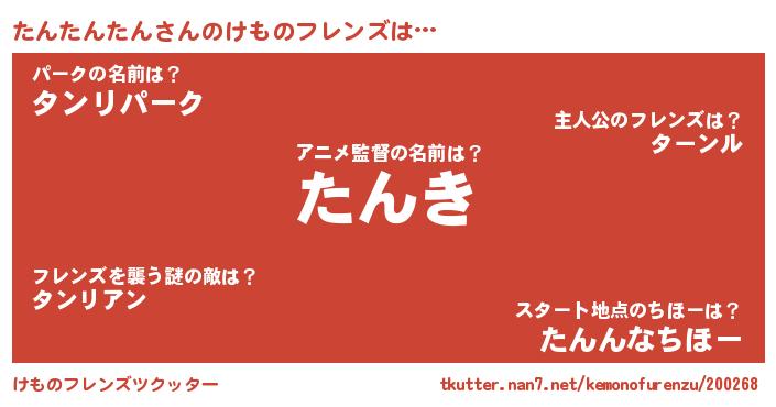 | ヒーロー風カッコイイあだ名 | 『銀牙騎士タン』『最強戦士タンタンタン』 |