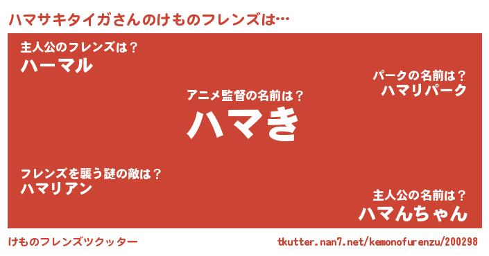 | 意味不明あだ名 | 『住所不定無職ハマサキタイガ(9歳)』 |