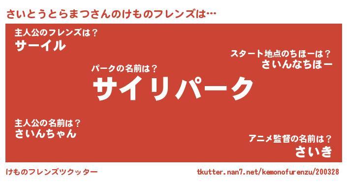 | 意味不明あだ名 | 『自称さいとうとらまつ』 |