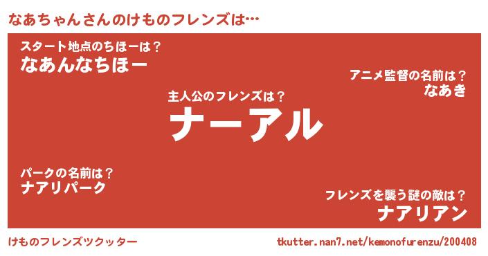 | ファンタジー風あだ名 | 『ナアディッシュ』『カークナアラー』 |