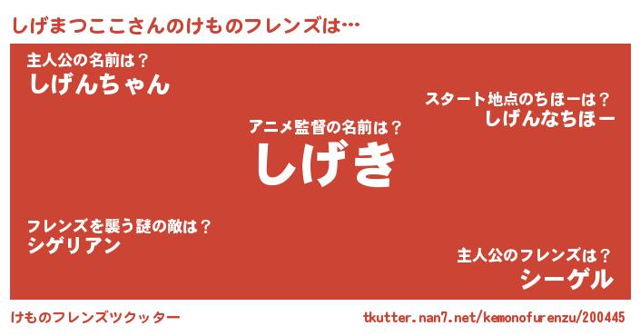 | 2回繰り返すあだ名 | 『ねちょねちょ』『しげしげ』 |