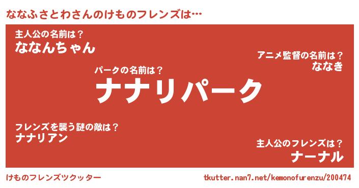 | ヒーロー風カッコイイあだ名 | 『最強戦士ナナフサトワ』『仮面ナナダー』 |