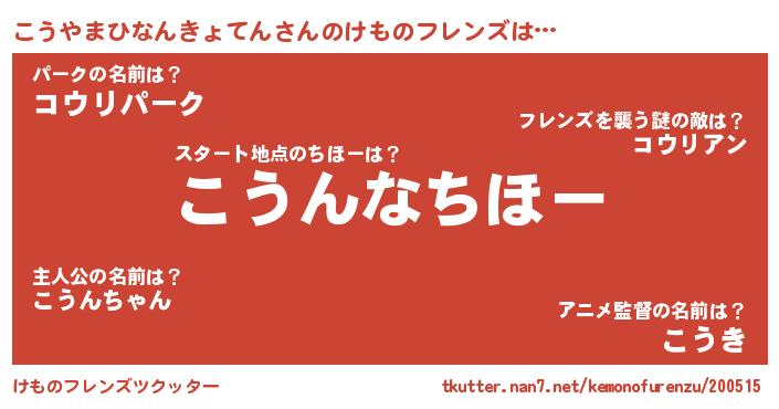 | 意味不明あだ名 | 『こうやまひなんきょてんフォーエバー』 |