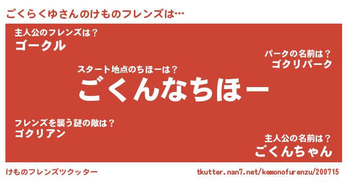 | 2回繰り返すあだ名 | 『じくじく』『ごごくく』『とぷとぷ』 |