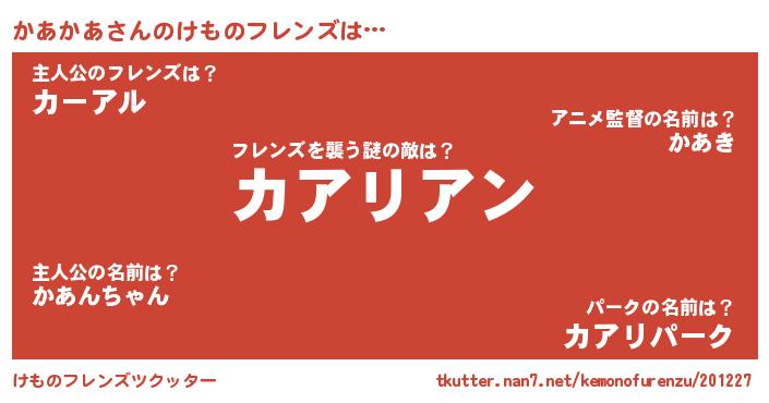 | 男性向けラノベタイトル風あだ名 | 『魔弾の王とかあかあ』『緋弾のカアカア』 |