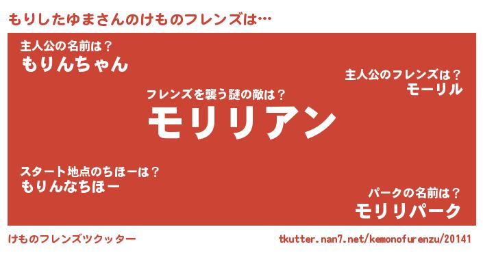 | 男性向けラノベタイトル風あだ名 | 『おまえをオタクにしてやるから、俺をもりしたゆまにしてくれ! 』 |