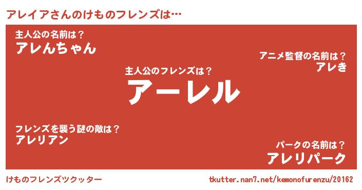 | 意味不明あだ名 | 『永久保存アレイア』『ペロリンアレイア』 |