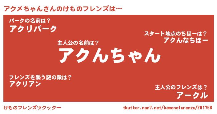 | ファンタジー風あだ名 | 『アクフェル』『ゼアクトゥ』 |