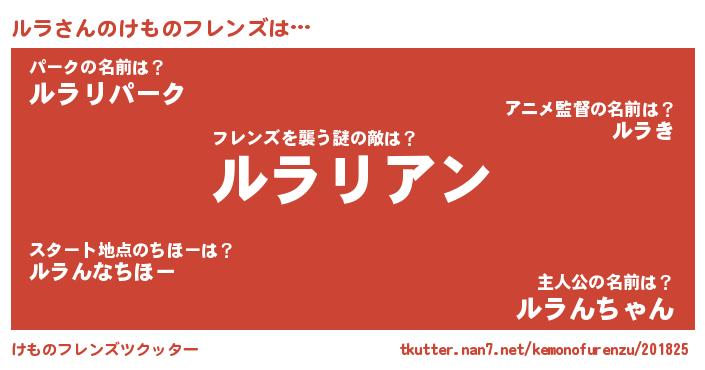 | ヘコむあだ名 | 『ルラにゅー』『ルラを』『レバニラ』 |