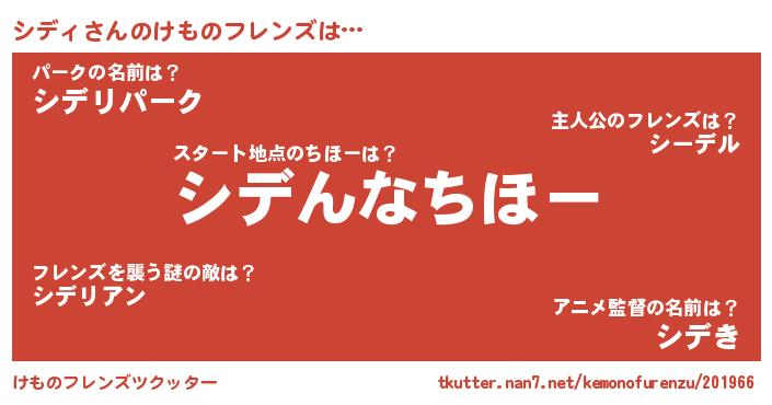 | 2回繰り返すあだ名 | 『シシデデ』『もうもう』『がやがや』 |