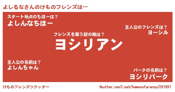 | ポケモン風あだ名 | 『ヨックウザ』『ヨシルダネ』 |