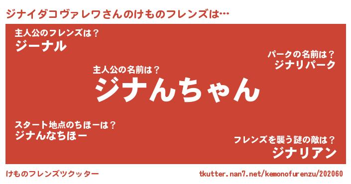 | ポケモン風あだ名 | 『ジーナイ』『ジナチュウ』 |