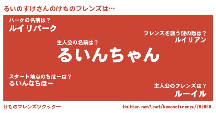 | 意味不明あだ名 | 『ペロリンるいのすけ』『自称るいのすけ』 |