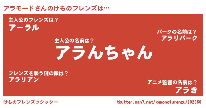 | 意味不明あだ名 | 『ペロリンアラモード』『自称アラモード』 |