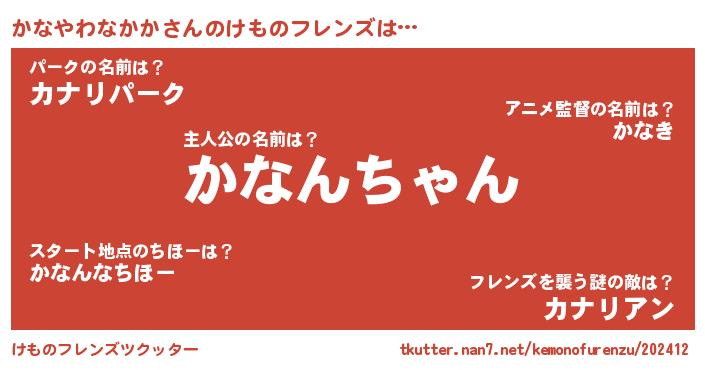 | 男性向けラノベタイトル風あだ名 | 『かなやわなかか~年齢イコール彼女いない歴の魔法使い~』 |
