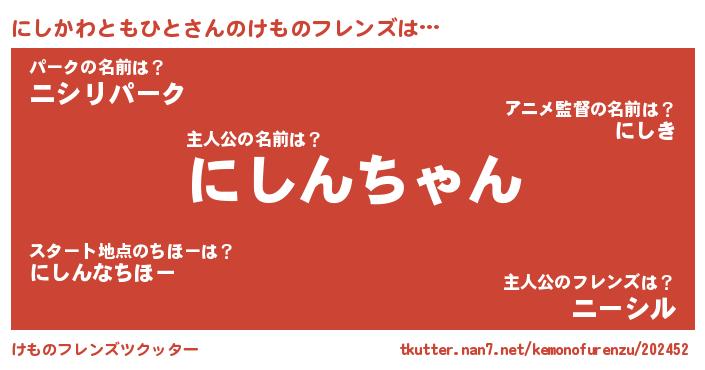 | ヒーロー風カッコイイあだ名 | 『スーパーニシカワトモヒト』 |
