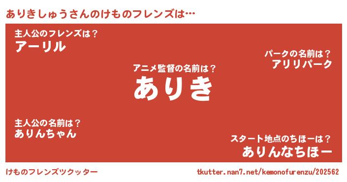 | 意味不明あだ名 | 『とにかく怪しいありきしゅう』 |
