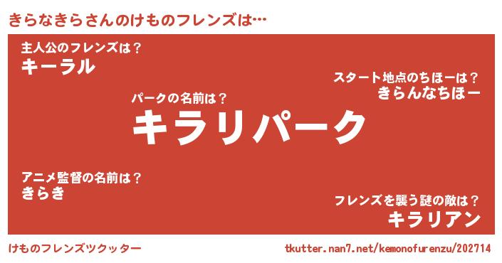 | ファンタジー風あだ名 | 『カークキララー』『ゼキラトゥ』 |