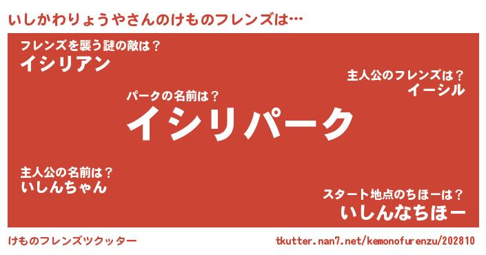 | 男性向けラノベタイトル風あだ名 | 『うちのいしかわりょうやが世界を掌握している!』 |