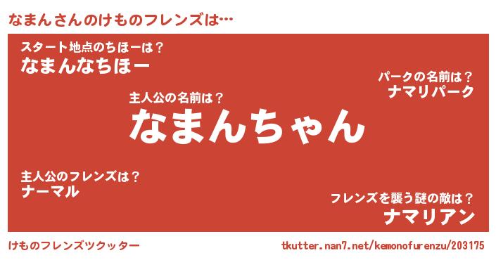 | ヒーロー風カッコイイあだ名 | 『スーパーナマン』『ウルトラなまんマン』 |