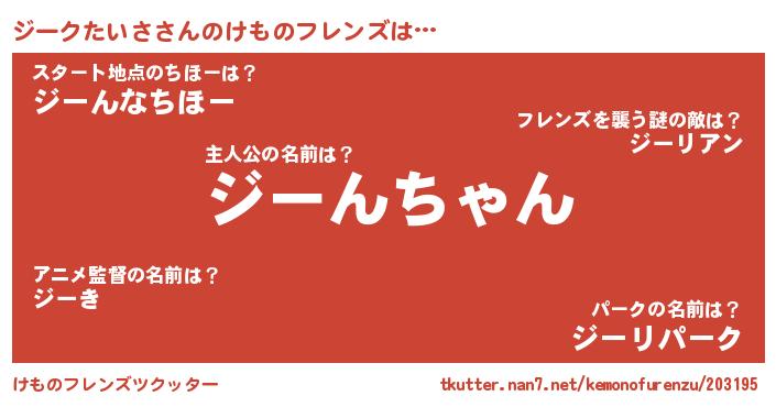 | 2回繰り返すあだ名 | 『ジージー』『ジジーー』『めそめそ』 |