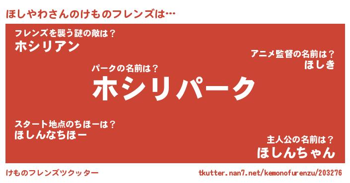 | 意味不明あだ名 | 『なめこ科ほしやわ属』『自称ほしやわ』 |