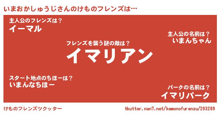 | 肩書あだ名 | 『いまおかしゅうじ助教授』 |