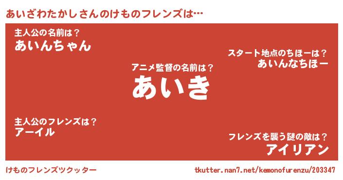 | 萌えアニメ | 主人公(あいざわたかし)のあだ名『 あいぴょん』 |