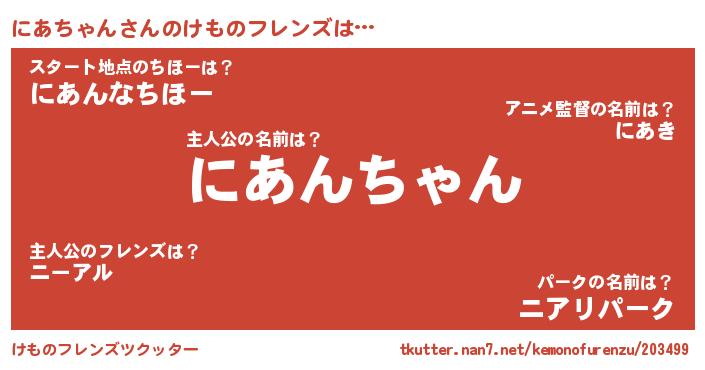 | 2回繰り返すあだ名 | 『わんわん』『にあにあ』『ににああ』 |