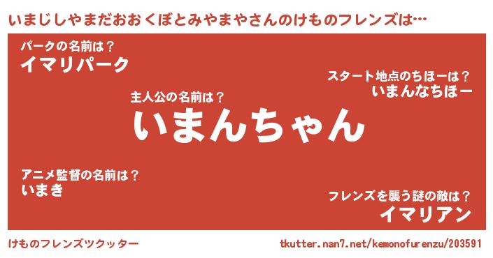 | 2回繰り返すあだ名 | 『いまいま』『もぞもぞ』『ぶんぶん』 |