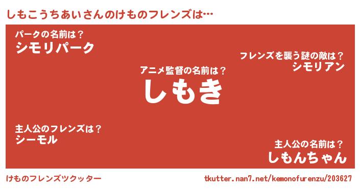 | 意味不明あだ名 | 『とにかく怪しいしもこうちあい』 |