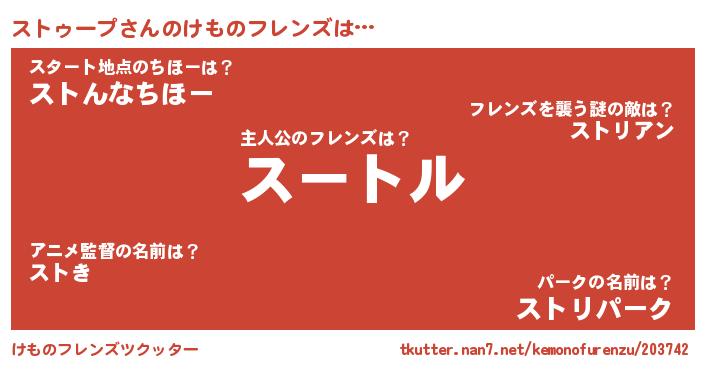| 男性向けラノベタイトル風あだ名 | 『ストゥープという概念が存在しない退屈な世界 』 |